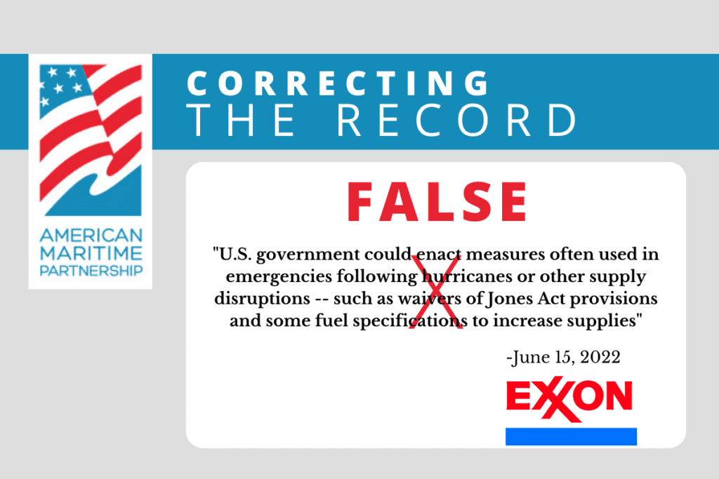 The assertion that the Jones Act is the reason the US imports Russian oil is wrong and demonstrates a fundamental lack of understanding of global (and domestic) oil markets, fails to recognize that American vessels are regularly carrying crude oil and other petroleum products to markets throughout the country and are in a position to continue to support the needs of refiners and other customers in the United States. Further, a call for a waiver, which would displace American vessels for foreign vessels with foreign workers, is ironic given that the current supply chain and Ukraine crisis shows that our nation must be in control of our own energy and transportation needs read more →